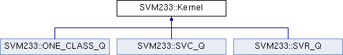 Inheritance diagram for SVM233::Kernel:Public Member Functions | |