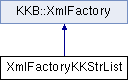 Inheritance diagram for XmlFactoryKKStrList:Public Member Functions | |